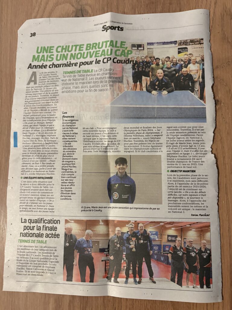 Caudry, au rythme du tennis de table vétéran