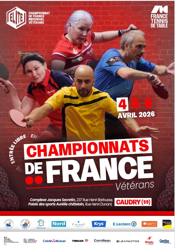 Après l’organisation du TOP 16 U 10 d’il y a deux années, nous sommes heureux et remercions la FFTT de nous accorder cette très belle organisation des Championnats de FRANCE VETERANS 2026.